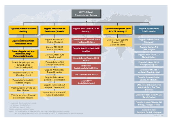 Organizační strukturu skupiny Zeppelin znázorňuje následující organigram, který lze stáhnout ve forámtu PDF zde: