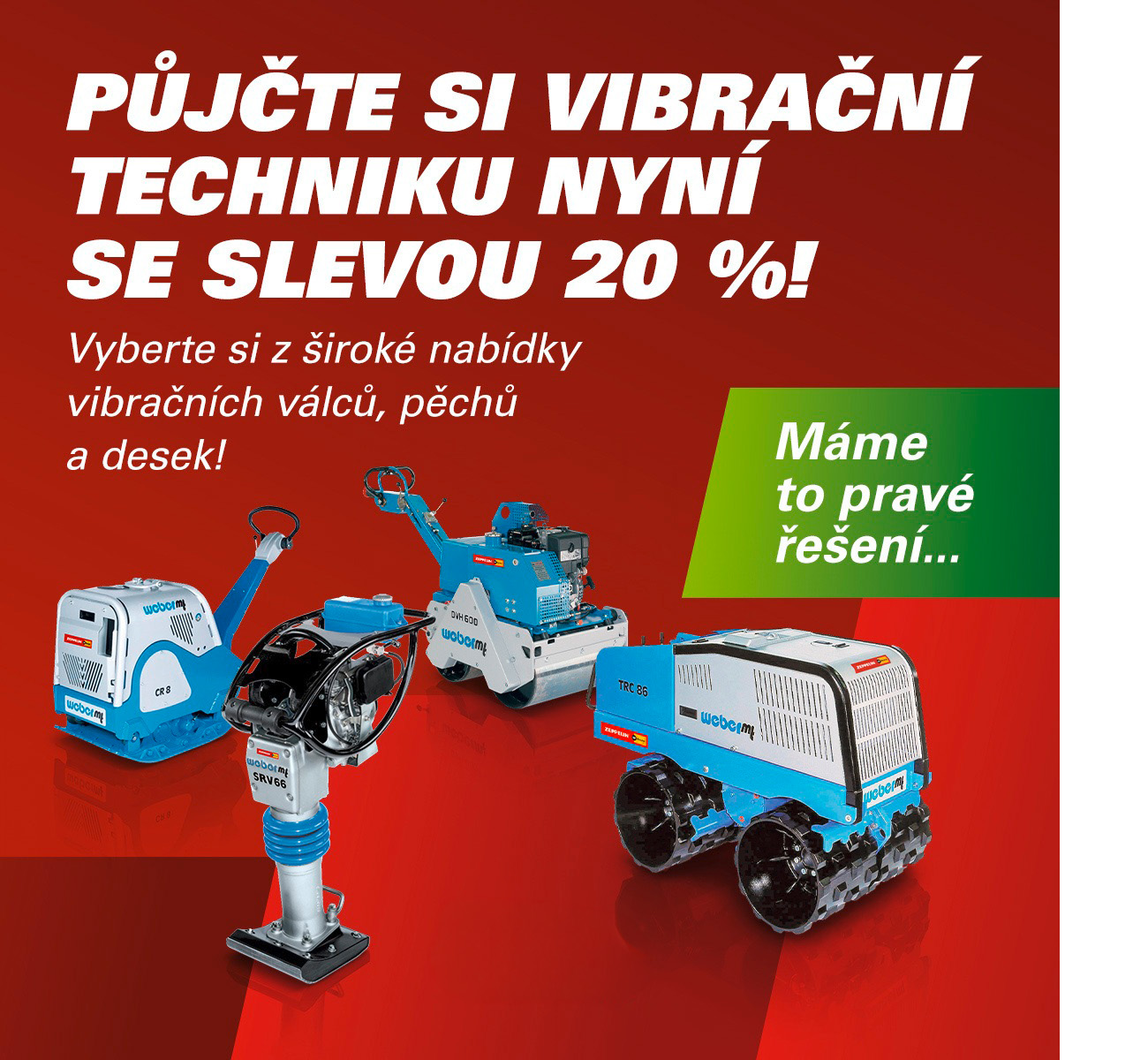 Vyberte si vibrační techniku z naší široké nabídky a zaplaťte tento měsíc o 20 % méně! Pronajměte si vibrační techniku na den, týden nebo měsíc podle vašich potřeb. Jsme flexibilní a máme pro vás to pravé řešení!