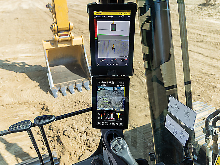 Systém Cat Grade a rýpadlo pracují společně jako jeden propojený celek s využitím palubních procesorů a senzorů. Integrované komponenty jsou chráněny před poškozením, aby byla zajištěna jejich dlouhá životnost.